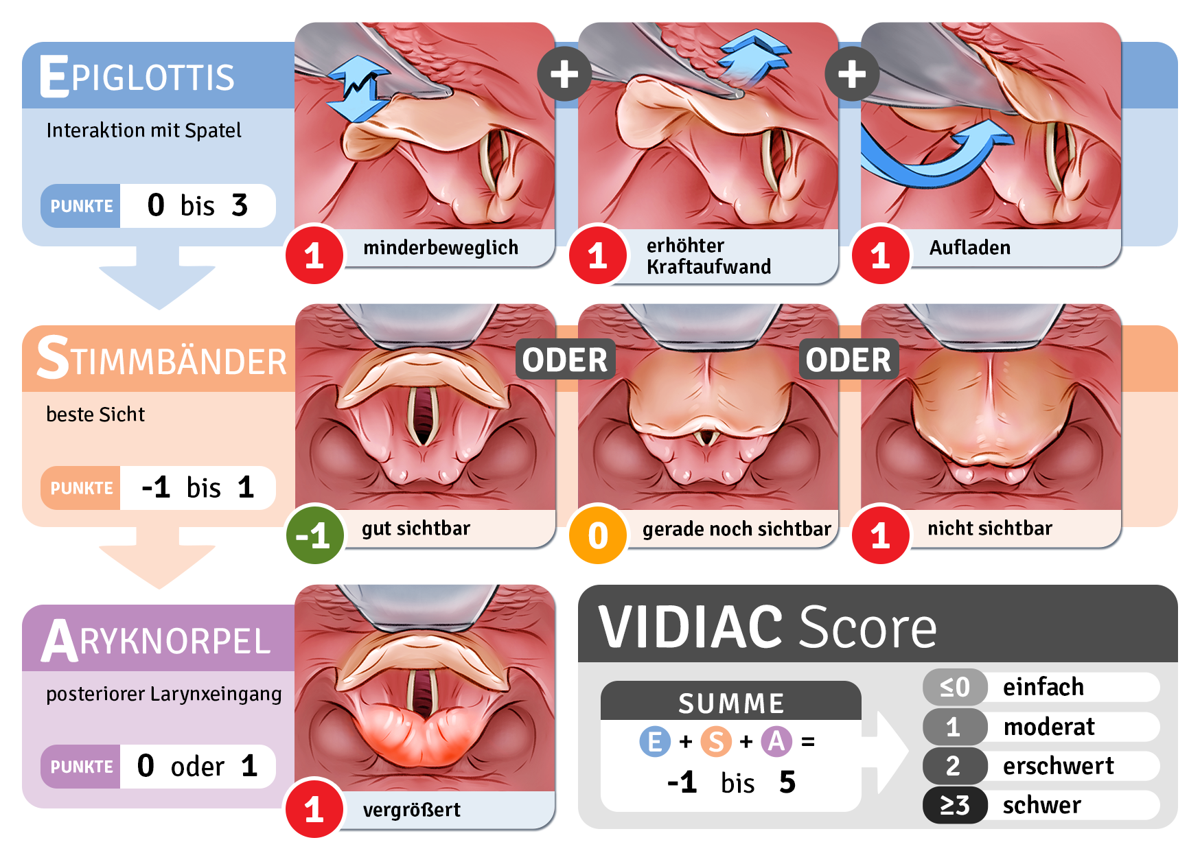 Verbessern Sie gezielt Ihre Technik bei eingeschränkter oder schwieriger Glottissicht – insbesondere in Situationen, die laut VIDIAC-Score als „nicht einfach“ oder „erschwert“ einzustufen sind: